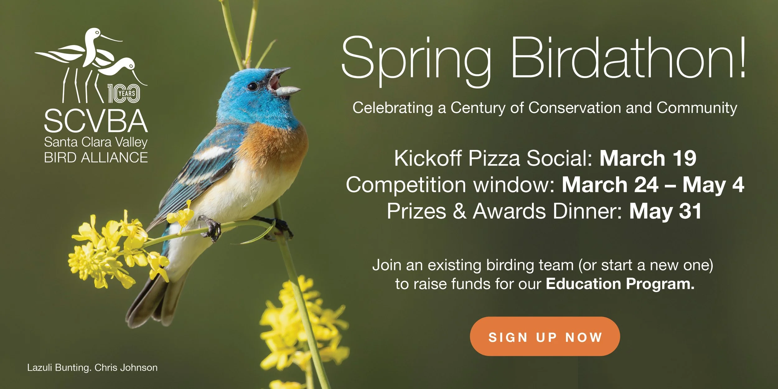 Birdathon begins March 25 with a pizza social at McClellan Ranch! Join or make a team of your own, and join us in birding for a cause!