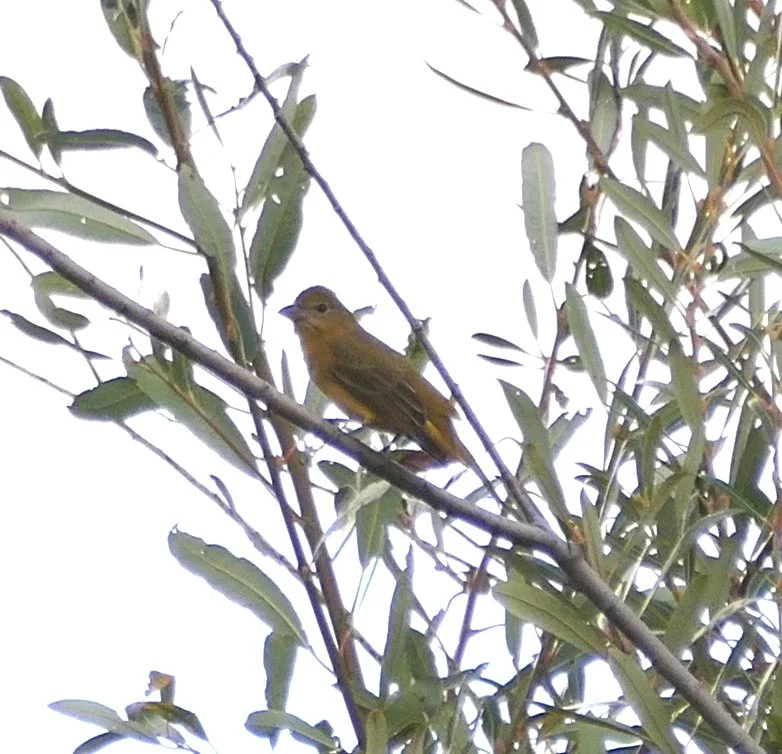 Melanie Barnett (Sunnyvale) told us: “On November 18, I saw a Summer Tanager in a tree along Calabazas Creek (at the boundary between Santa Clara and Sunnyvale). The photos aren't that great because the bird was distant and the skies dim with clouds. But it was such a thrill to see near home. This is the eBird list: https://ebird.org/checklist/S154726139.”