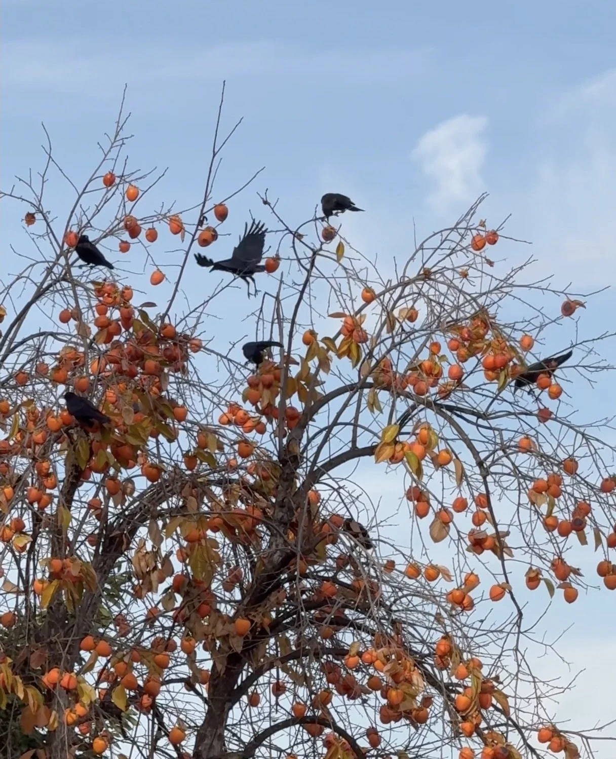 On December 13, Anjali wrote: “Today I spotted lots of American Crows feasting on hundreds of persimmons. Quite a delightful sight. There were at least 50 crows in the vicinity.”