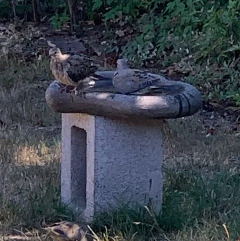 Emma says: “The Mourning Doves saw what fun the Lesser Goldfinches were having in the spa and decided to try it for themselves. I think they might need a bigger pool.”