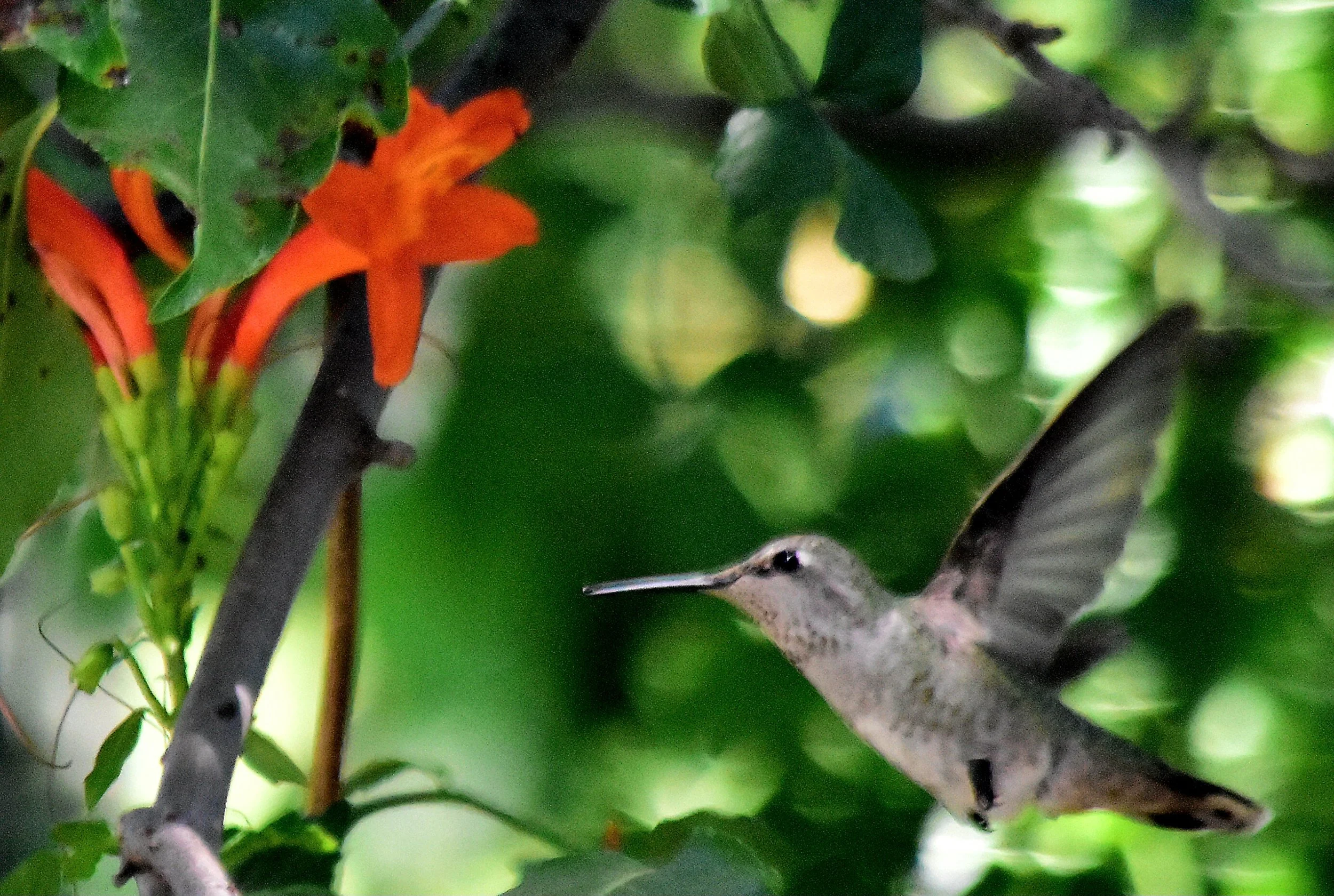 “The most interesting thing is when woodpeckers and phoebes come, they normally make sounds to notify me of their arrival. Only woodpeckers and hummingbirds (on my patio) appreciate the feeders I have for them. Juncos like to find food on the ground and the rest of the birds just visit, hopping around the trees.”