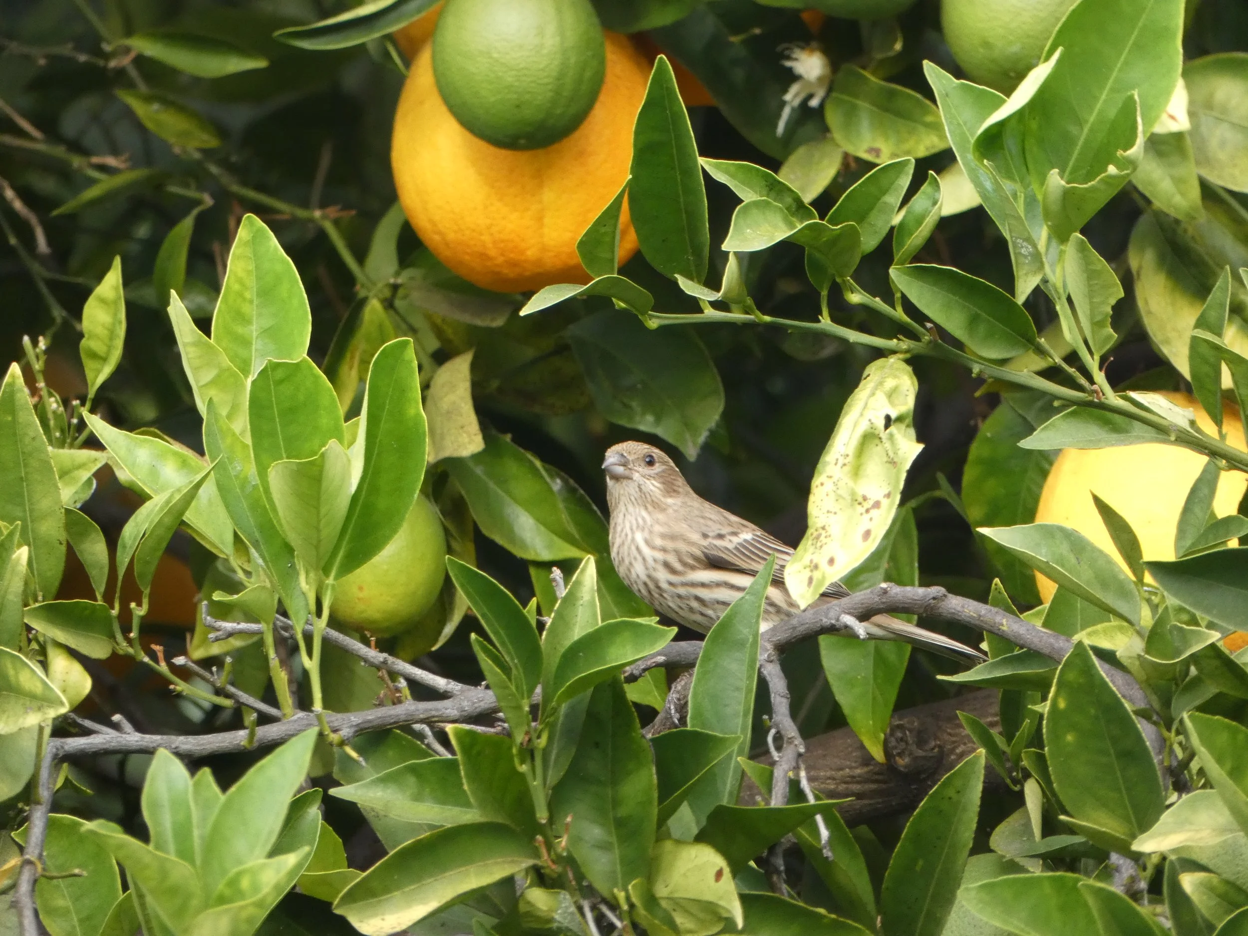 “A neighboring glossy privet (Ligustrum lucidum) has thousands of berries. Although it is an invasive species, it’s popular with birds. House Finches are eating the berries green, and American Robins and Cedar Waxwings eat them once they get ripe.”