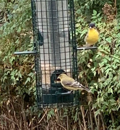 "My salvia plant continued to be popular with the hummingbirds, and the Lesser Goldfinches seem to like it, too. All in all, September was pretty lively around here!"